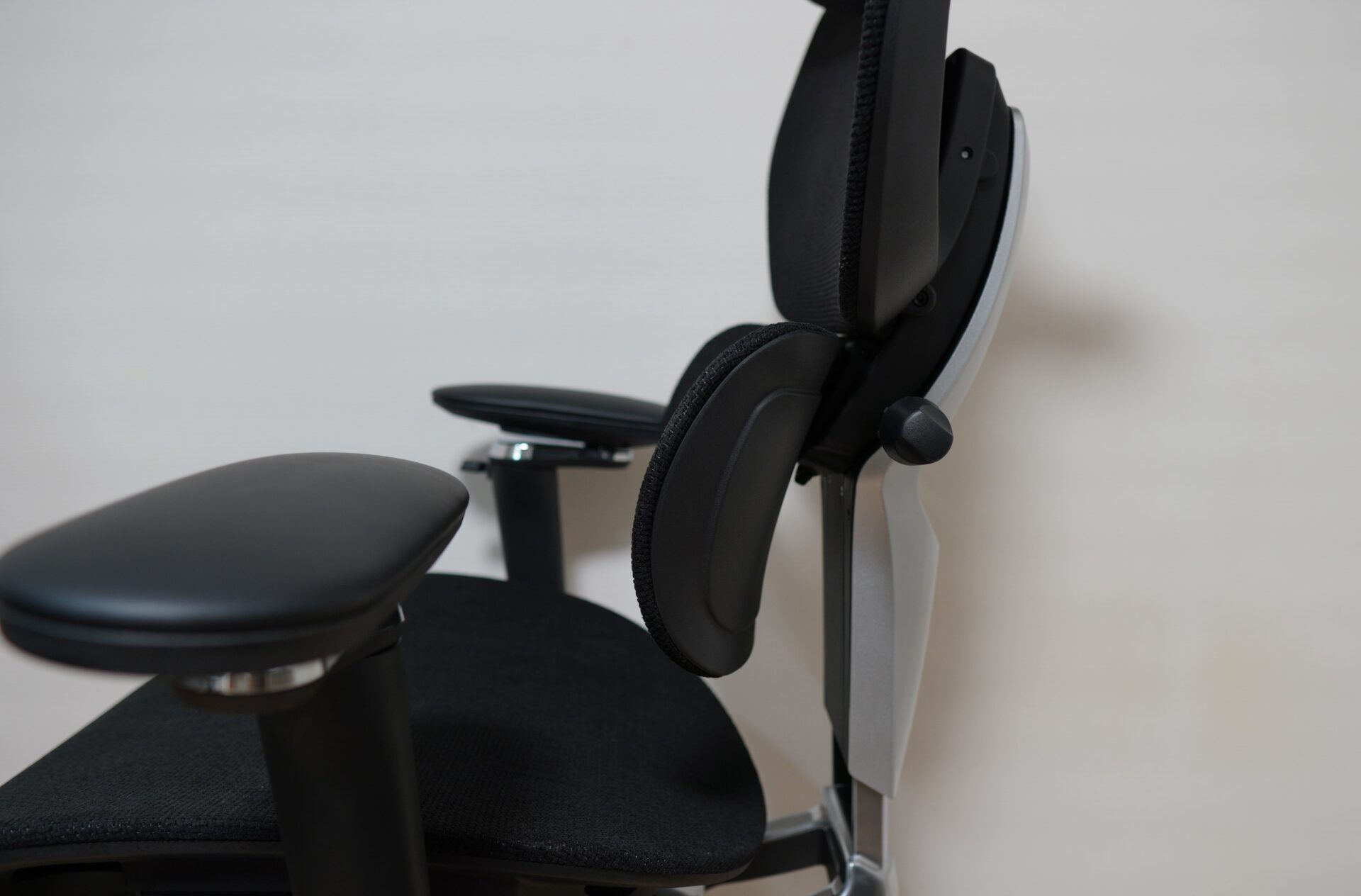 - 連動による密着性:着座者が前傾(デスクに近づく)すると、腰部サポートが自動的に前方へせり出します。逆に後傾(リクライニング側)すると、サポートも後方へ引かれます。この連動は極めて滑らかであり、腰とサポートの間に隙間が発生する瞬間がありません。